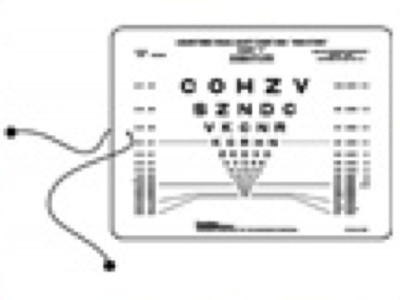 Near vision card with 16 (40 cm) measuring cord.